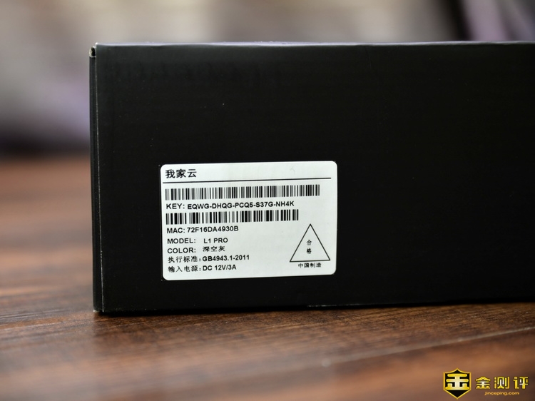 机身的尾端贴有我家云 L1PRO存储器的铭牌标签,并且这里也是所有接口的集中地。从上往下分别是Reset插孔,USB3.0接口,USB2.0接口,千兆网口和电源接口。每个接口的右侧还有图标或文字示意。
