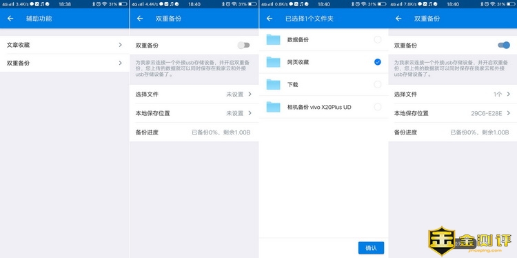 辅助功能里的双重备份,是一个相当安全的功能,将文件从我家云 L1PRO存储器备份到外接存储设备,可以有效避免数据损失。