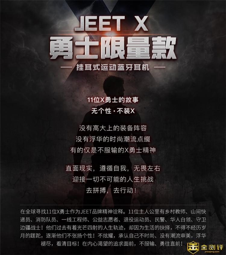 金测评希望你客观、专业、场景化的真实体验分享,而且众测报告必须是100%原创,抄袭将永久拉入黑名单。 本次为大家带来“JEET X 勇士限量版蓝牙耳机” 的试用,一起来看看吧。