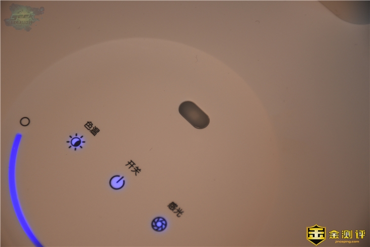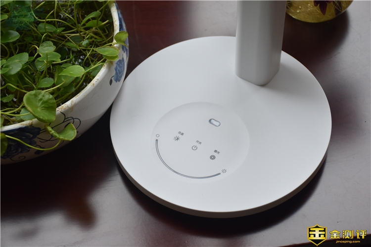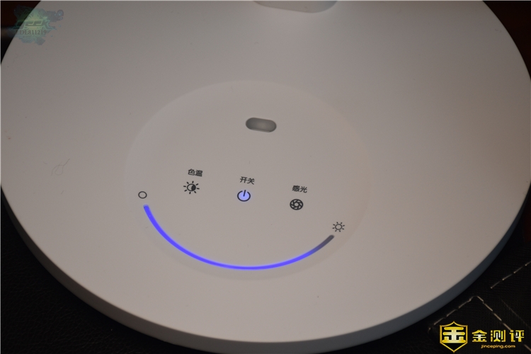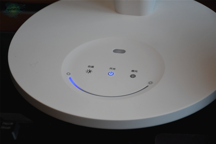 孩视宝的整个底座上是没有一个物理开关的,都是触控式的,上面有“色温”、“开关”、“感光”和“亮度”调节,其亮度调节是采用滑动无极调光,手指划到哪,亮度就调到哪,想要什么亮度都可随心变换