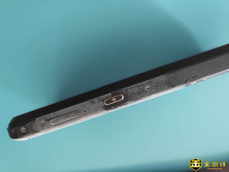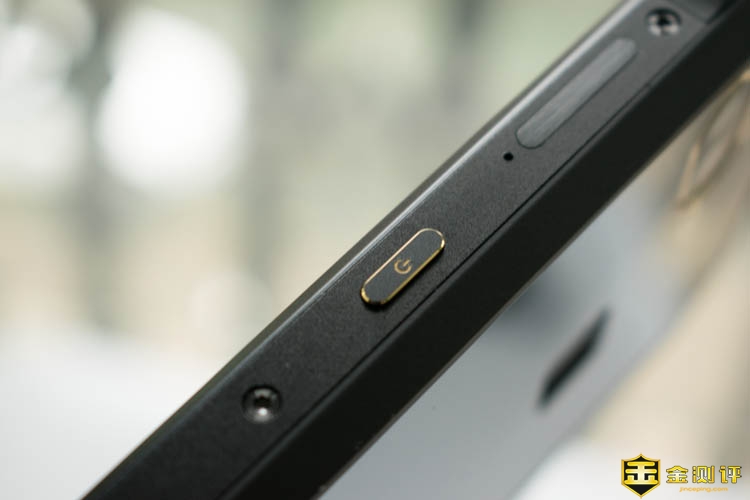 另外的侧边,则是同样的感觉。有一个金属按钮,还有一块深色的。