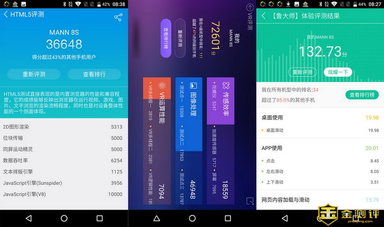 MANN 8S 三防智能手机采用高通骁龙653处理器,搭配6G+64G容量。从硬件上来看,性能还是比较主流的。笔者安兔兔和鲁大师进行了测试。安兔兔得分是91263分,鲁大师性能测试是104019分。测试所得的跑分还是可以的。