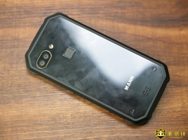 MANN 8S 三防智能手机的机身背面很有特点,采用了高硬度复合玻璃材质,不易破裂,更加耐用。