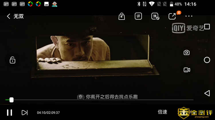 性能跑分只是参考,最主要的还是使用的感受。MANN 8S 三防智能手机机身大,所以内置的电池也大,具有6000mAh超大容量的锂电池,这几乎是18年新上市的手机里最大电池容量的。爱奇艺在线视频蓝光级的播放,整体非常流畅,没有卡顿,时间轴切换速度也快。笔者观看的是《无双》,从14:16看到16:18,耗时2小时2分钟,电量从48%降低到31%,耗电17%,这是在最高亮度和最大音量扬声器外放的情况下。也就是说,满电状态下,可以连续播放约12小时的视频。如果降低亮度和音量,那续航时间还会大幅延迟,官方标注的时间可是22小时,这个笔者相信就算达不到也相差不远。