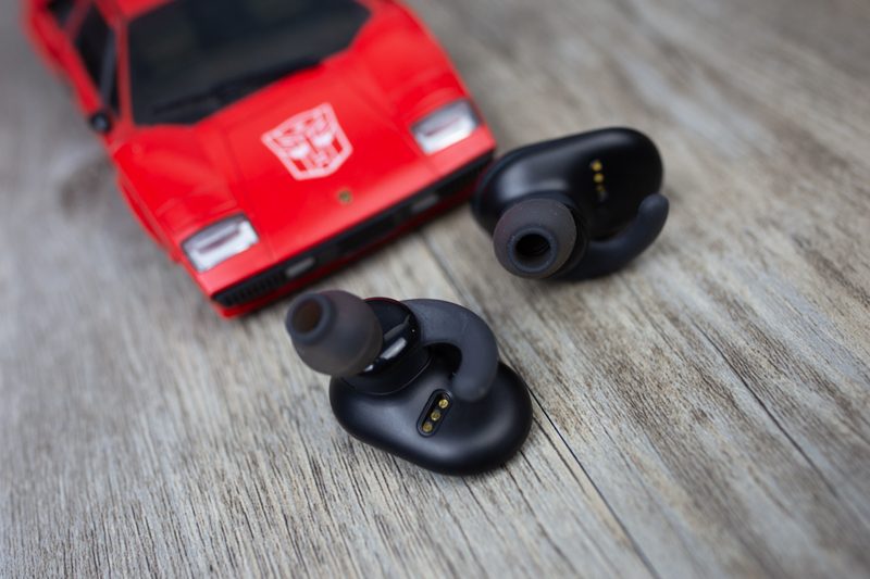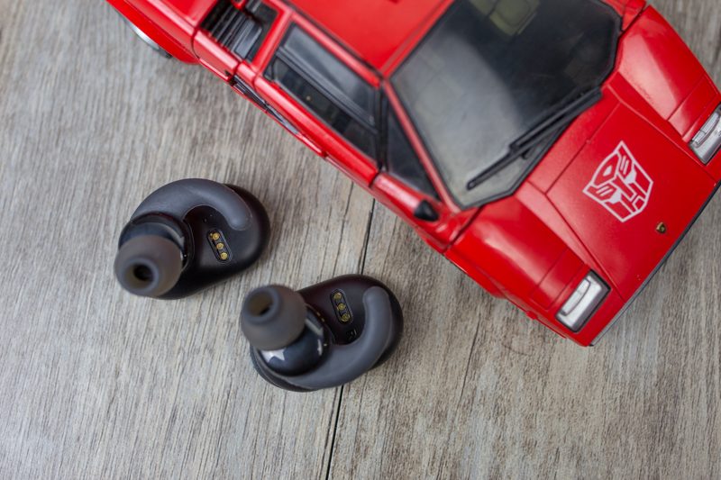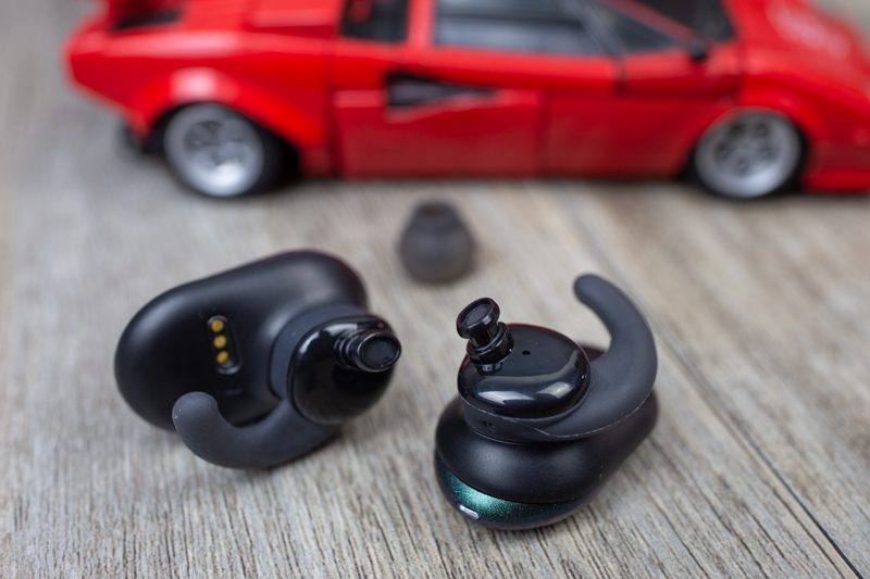 目前我并未找到耳机内的锂电池容量数据,但从这造型设计来看,里边的电池占用面积不小。另外这款耳机是内置耳挂的,运动场合使用没问题,但耳挂不可拆卸更换,耳机本身也不防水,所以重量级运动场合还是不太建议使用它。