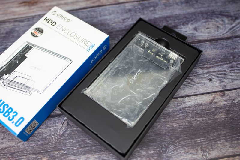 ORICO透明硬盘盒上包着塑料纸,有助于路上防止剐蹭。