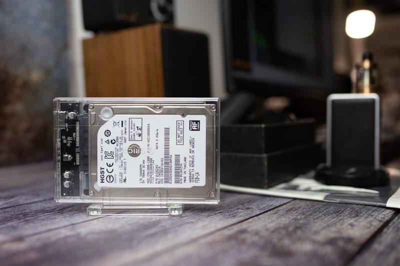 ORICO透明硬盘盒加上2.5寸机械硬盘的总重量是156.2g,便于日常携带。记得有一次我就这么扔在办公室的桌子上,招来好多同事的目光呢!