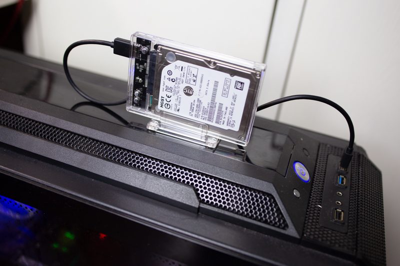 接通电源后,会发出蓝光,硬盘读写的时候还会有红光闪烁,很直观的设计。