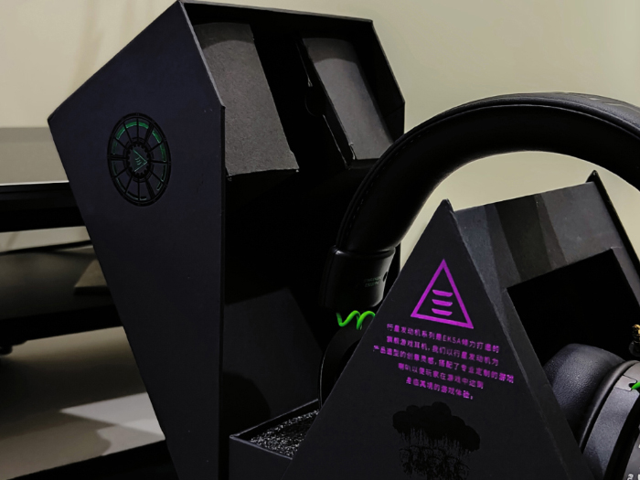 产品的包装方面也是符合星际引擎这个名称的,需要从中间向两侧打开,中间的三角形底座不就是三体鲨的化身嘛!其它配件都巧妙的固定在四个盒子里,而这四个盒子分别位于四个不同的角上,既起到了固定作用,又可装上各种配件。