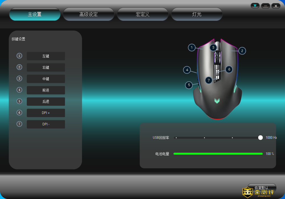 PC端的配套软件,安装包大小为1527KB,装完之后立刻就能使用,没有任何多余的东西,USB回报率最大支持1000Hz,这个在FPS类游戏中会更比较实用。