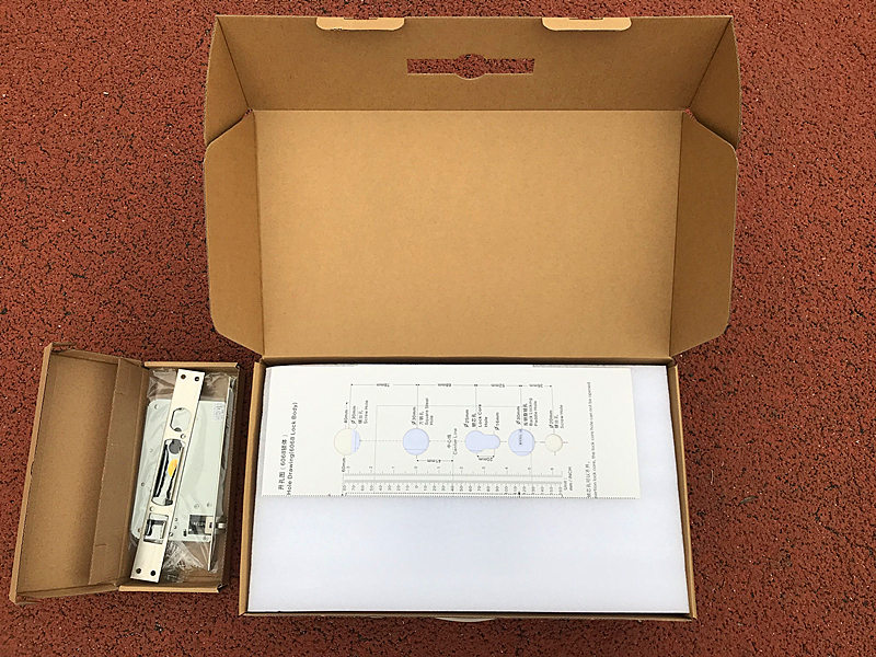 箱体的侧面有产品的名称、型号(产品上介绍的是E206T,但是工单上显示的是E205)、编码、开门方向、主要材质、产品颜色、安装门厚、工作电压和使用范围等内容的介绍。在产品发货之前,咱们的厂商曾经不止一次的给奶爸确定家里门的信息情况,确保发货而来的产品可以让我们轻松愉快的安装上。后期在售后安装的时候,咱们的售后安装员都不得不承认门锁的尺寸、厚度、开门方向等都非常合适,安装非常顺利……
