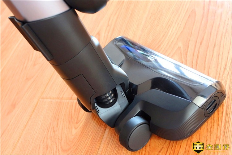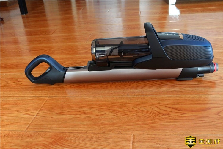 ▲取出主机后,产品采用的是蓝色和金属色搭配,吸尘器采用的是原装进口数字电机,一款吸尘器电机会决定了它的使用寿命和长时间使用后吸力的变化,这款产品相比于其他普通传统电机则会更耐用,长时间使用吸力不衰减,电机和集尘桶都设计在金属杆上,两个手柄方便提拉操作。