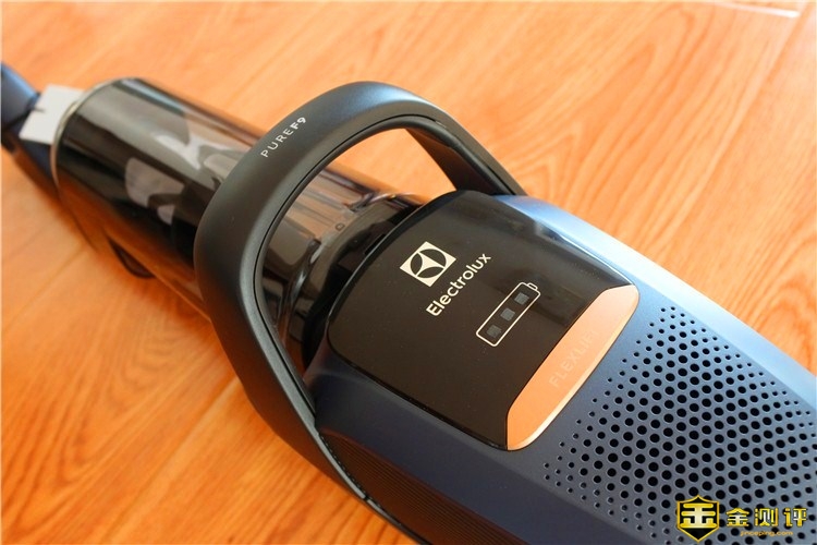 ▲主机正面包含一个显示面板,上有伊莱克斯的产品LOGO,并且可以显示电池的电量信息。