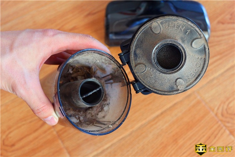▲集尘桶为卡扣式设计,方便安装及拆卸,取下后轻按卡扣开关即可打开集尘桶。