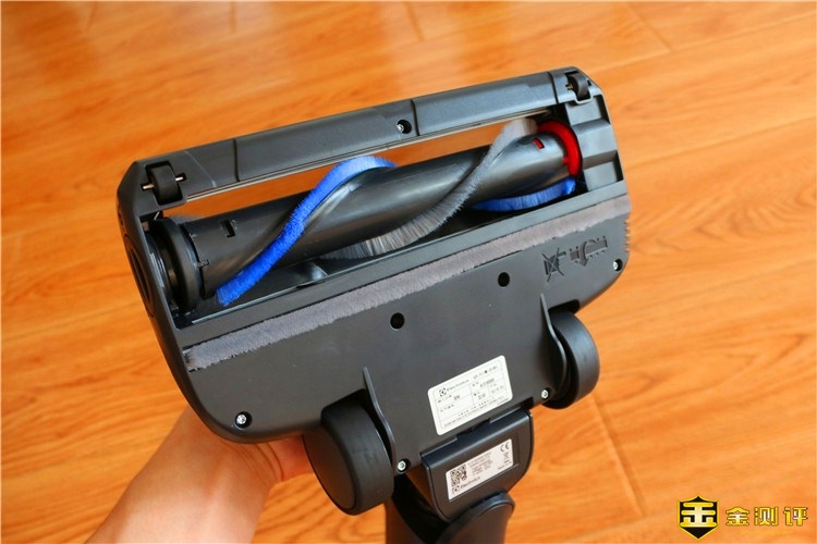 ▲我们日常使用最多的就是这个地板刷,这款产品的地板刷采用了双色辊刷,两种刷毛分别有不同的作用,灰色刷毛可以清除大颗粒碎屑,蓝色刷毛可以清洁地毯,这里我要说明一点的是,我在后面做地垫清洁的时候,滚动的流畅度和清洁效果很好,可能和这个独特设计的刷毛也有一定的关系吧。
