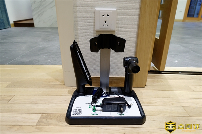 充电底座的设计也是非常的新颖,不仅可以让吸尘器进行充电,而且底座两边还可以放置收纳刷头,充电的方式采用的是直立接触式的充电方式。