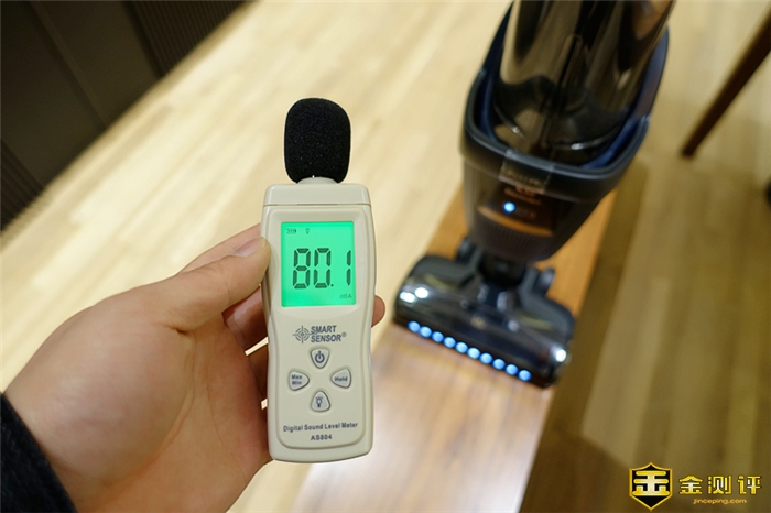 开启三档后,通过分贝仪测得的数值为80.1DB(分贝)