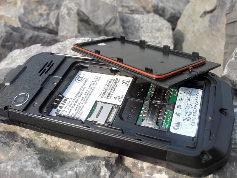 后盖的开启是需要用附送的“钥匙”拧取唯一的一个螺丝来实现,这也是三防手机最具有标志性的地方。