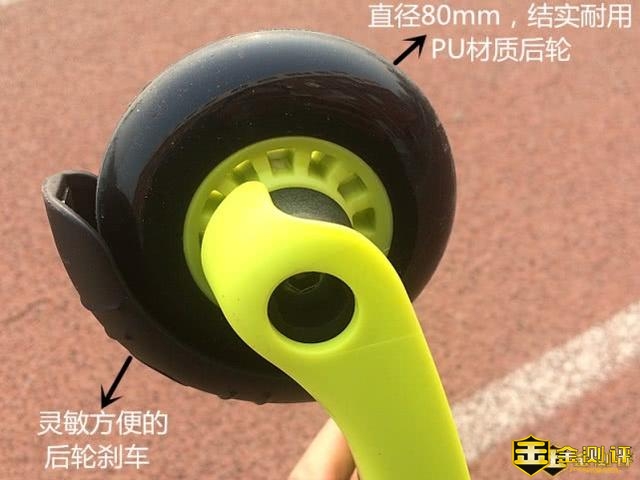 众所周知,所有的高速运动的车子,如果没有刹车的话,后果可想而知。酷骑滑板车拥有直径80mm的PU材质耐磨抓地后轮,PU材质坚固结实,后轮上还安装了一款方便灵敏的后轮刹车,可以保证滑板车在快速运行中及时有效减速。