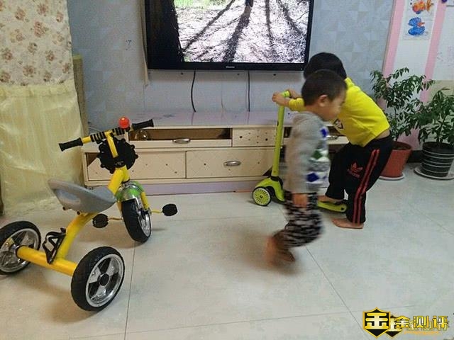 虽然是偷偷的玩耍,但是还是被弟弟发现了,好在桃桃现在在小三轮上,接下来没事奶爸组织他们搞一次比赛,桃桃骑小三轮车,哥哥骑滑板车,一起在屋子里面滑动起来啦……