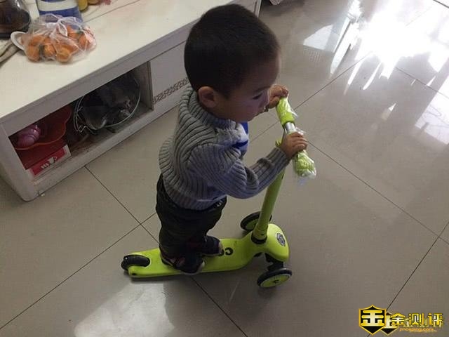 外出去小姑奶奶家做客,在小姑奶奶家的大客厅里面也滑一滑,滑行非常畅快!桃桃用脚轻轻一蹬就能滑行七八米,客厅和卧室、厨房、厕所之间来回窜油,酷骑滑板车的灵活安全性还是非常棒的!