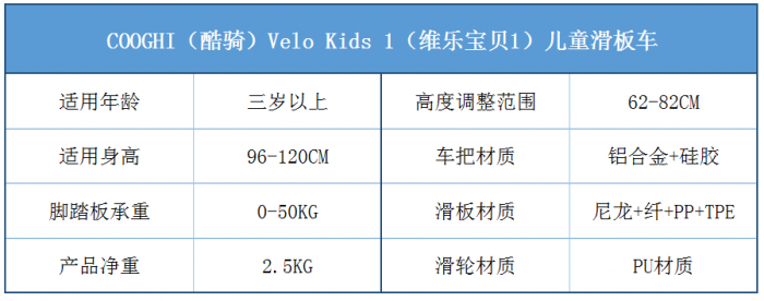 今天笔者有幸参与到酷骑VELO KIDS 1多功能滑板车(以下简称酷骑V1)的测评工作,首先要感谢金测评给予的测评名额和认可,此外也要感谢大家的阅读。对于滑板车笔者还是非常了解的,毕竟我的小孩也是小区里的数一数二的滑板车高手(家长都是这么看待自己的孩子)。之所以能有如此的成绩,与我的培养和选购能力是密不可分的,Hia!笔者看来,选购滑板车需要注意以下几点:1.安全性:必须保证儿童的使用安全;2.轻便型:毕竟是儿童用品,太重容易导致逆反心理,而且上下楼携带也不方便;3.滑轮顺滑度:只有风驰电掣的感觉才能提升可玩性;4.噪音问题:毕竟吵到自己和别的朋友都是不好滴。本次测评也将围绕以上几点进行,希望我的测评能对大家有所帮助,我们Let's go!