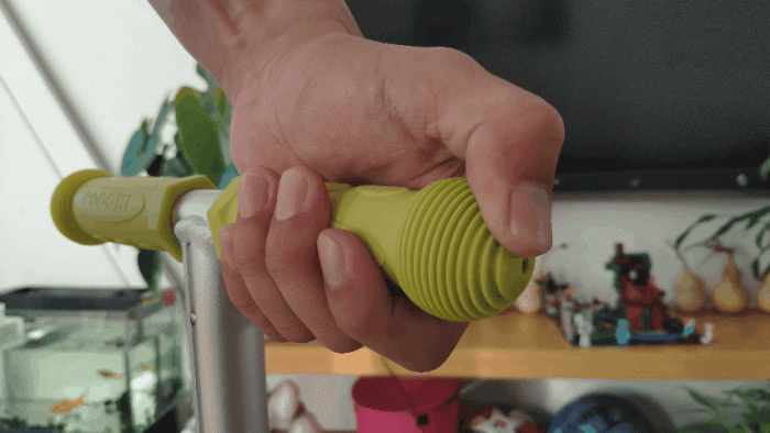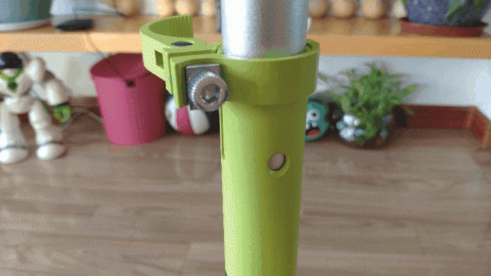 高度调节锁扣的操作非常简单,一开一合即可完成调节。此外还有安全销设计,高度达到最大时安全销弹出可避免脱把。