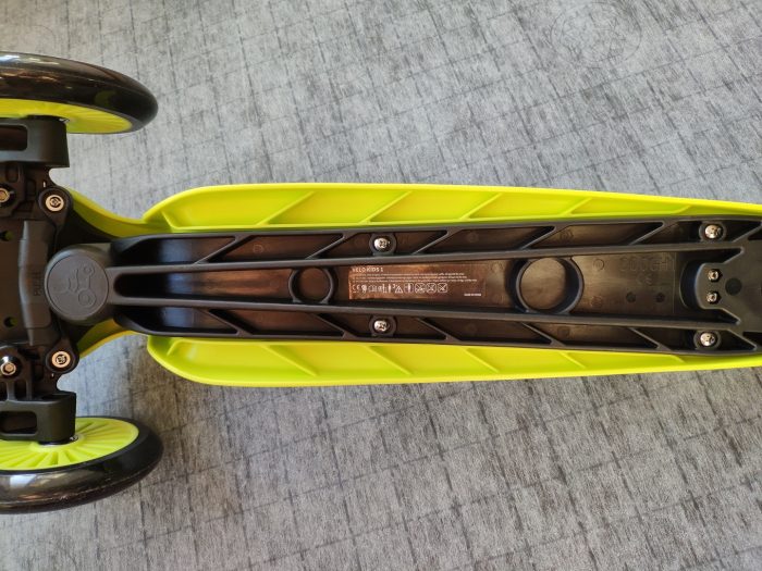 最后还要调节防撞衬垫,根据使用角度进行调节即可。我家小孩已经有过两款滑板车,包括迪卡侬品牌的滑板车,但都没有防撞衬垫设计,所以不得不说酷骑V1在细节方面表现的很出色。