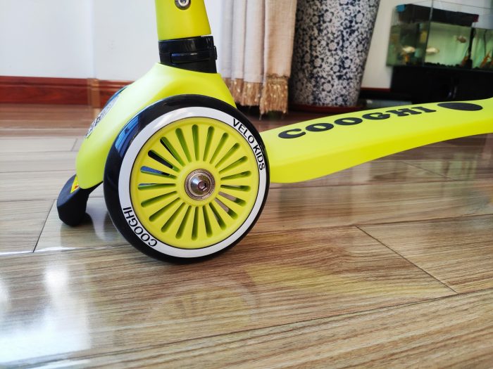 PU材质的滑轮有很好的静音效果和回弹性能,可以极大的提高滑行舒适度。2+1三轮稳固方式,保证滑板车可自行站立,滑行更容易保持平衡,提高上手速度。
