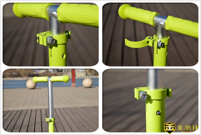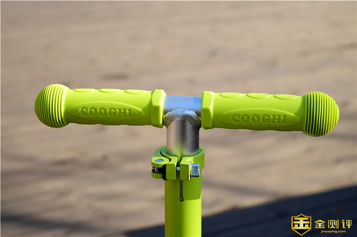 酷骑V1多功能滑板车采用了环保软胶手把设计,质地柔软、握持舒适不磨手,具有防滑防脱的作用。其中手把和车身都采用了铝合金材质,更加坚固耐用,不过在手把和车身的连接处的焊接缝比较明显,这个算是个小的不足之处吧。