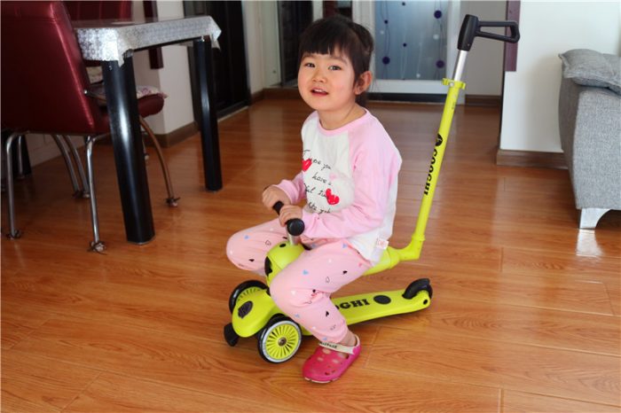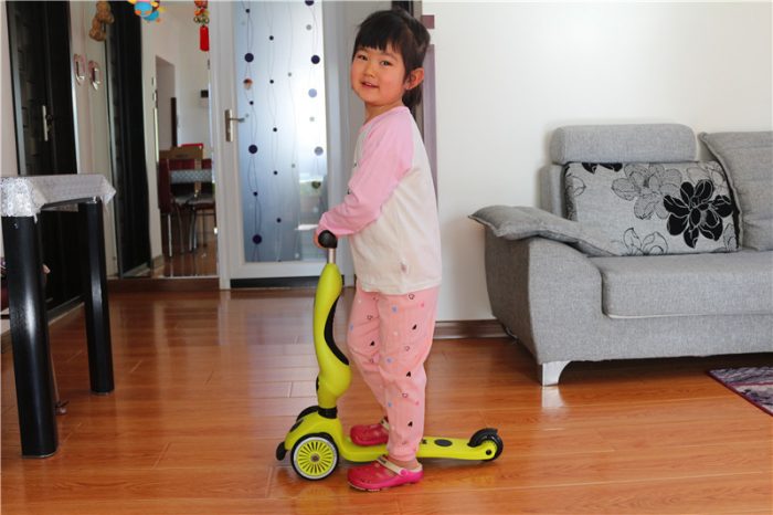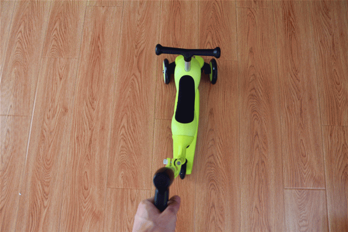 骑行模式下,比较适合刚刚接触滑板车的小朋友,尤其是刚刚会跑的那些小朋友,如果直接玩滑行模式很容易摔倒,骑行模式可以让小朋友坐在上面滑行或者学步使用,这样就不会摔倒了。