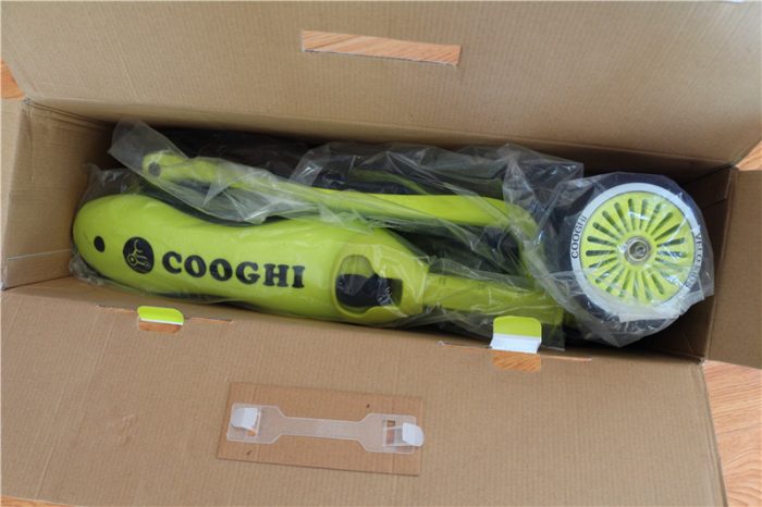 滑板车的所有配件都有很好的保护,并没有磕碰,这款滑板车一共有三款颜色,柠檬黄、圣诞红、伦敦蓝,我收到的是柠檬黄色。