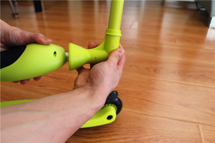 这款滑板车适合1-5岁孩子玩,适用身高82-118cm,所以也特意针对立把设计了三档的高度调节,我家小孩目前110cm,需要调节到最高档位使用了。