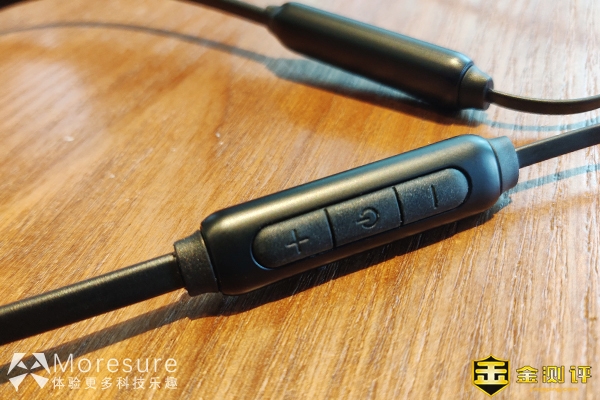 线控方面有3个按键,开机键长按开关机,短按暂停,音量键短按音量调节,长按上下曲切换,功能不复杂上手较快。外壳部分是磨砂硬塑料,中间按键是软胶材质。