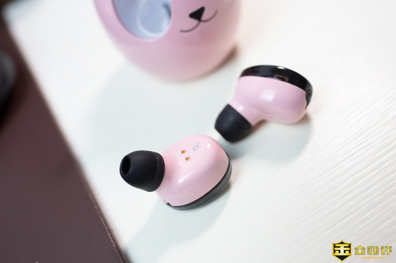 我选择购买它最重要的原因就是外观讨喜:大眼熊猫头+小恶魔耳朵,其实这个耳机还有黑色和白色的款式,我觉得送女孩子嘛就应该选个粉色的~。