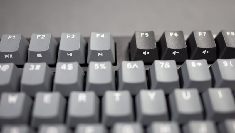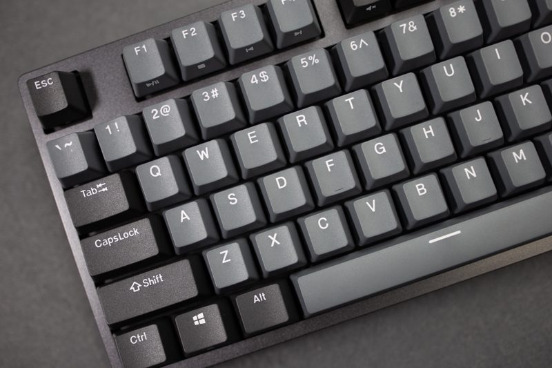 杜伽K320键帽上的字符都是闭口的,印刷清晰,字体也是个人比较喜欢的类型。
