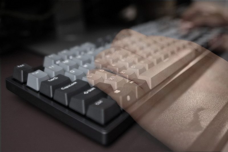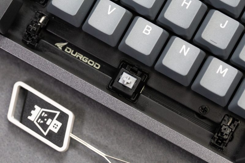 杜伽K320标配双色注塑的PBT键帽,从细节图来看这些键帽的做工实属上乘,没有出现奇怪的色块,三面加强筋,这也是我第一次体验到PBT键帽,我感觉PBT键帽相比ABS来说,会有一定的干涩感,但长期使用下来键帽表面未曾残留油腻,硫酸手们应该比较适合使用这类键帽。