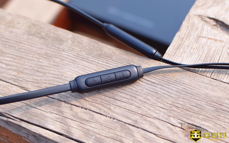 耳机控制按键置于右耳下部,同绝大多数蓝牙耳机一样,具有音量加减以及电源开关按键,按键设计的有些过于平整,虽然美观方面很加分,但是盲按电源开关是可能会有误按情况(个人体验),建议厂家能将中部的电源按键稍微凸起0.3mm,使用起来会更方便