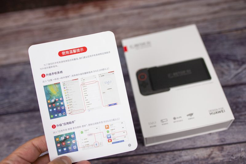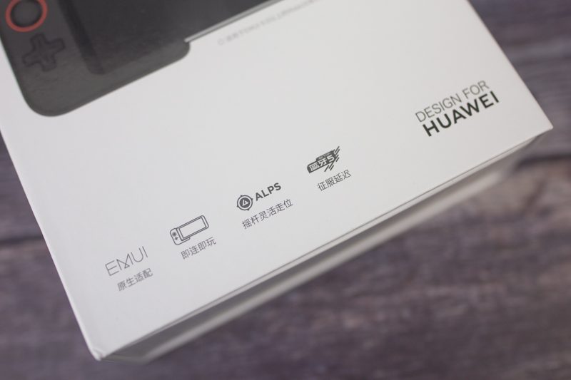 手柄主要功能都罗列在包装盒下方,EMUI原生适配、即连即玩、ALPS摇杆、征服延迟,这些特性没有任何夸大其词的成分,我会在下文里详细提到。