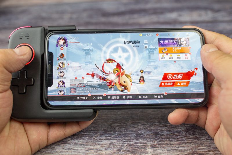 手柄安装方法很简单啊,升起拉杆,放入手机就可以了。第一次使用的时候需要现在手机系统里搜索到手柄,至于以后和以后的以后......只需要手机开着蓝牙放手柄即可,1秒就能自动连接,真正做到了即连即玩。北通G1能够塞下最大号的iPhone XS MAX,是不是很意外?也就是说6.5寸以内的手机都能完美支持,至于更大的手机尺寸......我就不知道了~没条件测试!