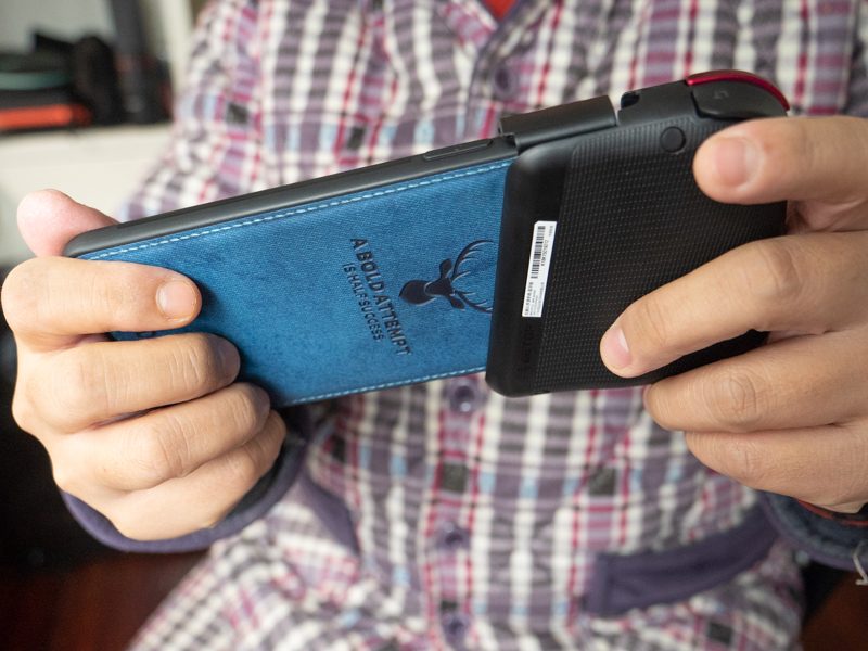 拉杆部位没有盖住iPhone XS MAX电源键的位置,然而并不是所有手机的电源和音量键都能与北通G1完美做到不遮挡的。可是,北通G1依然留有余地!