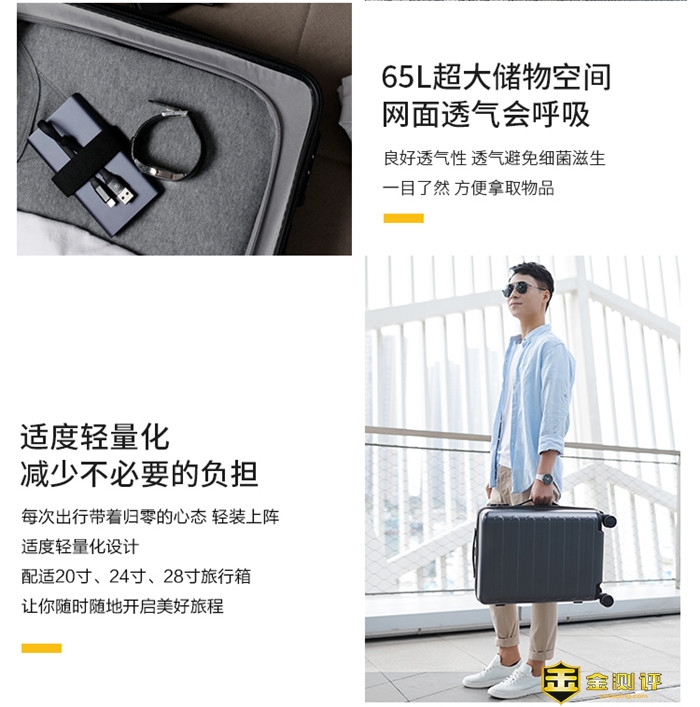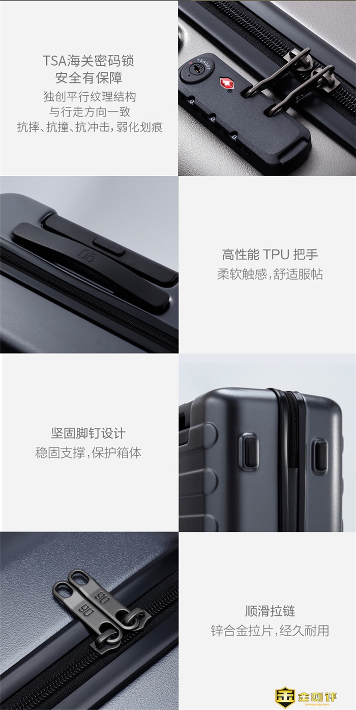 金测评希望你客观、专业、场景化的真实体验分享,而且众测报告必须是100%原创,抄袭将永久拉入黑名单。 本次为大家带来“90分七道杠旅行箱” 的试用,一起来看看吧。