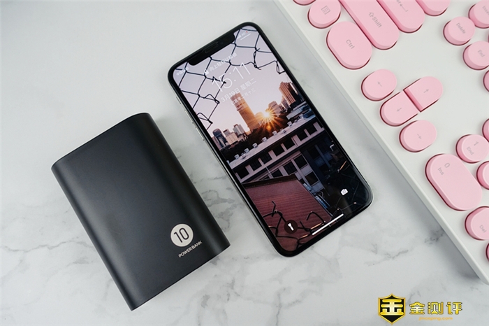 因为笔者的手机为iPhone X所以支持无线充电功能,将手机放置在移动电源的正面位置,然后在按一下智能按钮就可以实现无线充电了,在充电上还是比较方便的,支持手机带壳充电,并且也支持任意角度无线充电,只要手机放置在上面即可以充电,充电速度也比较的快。