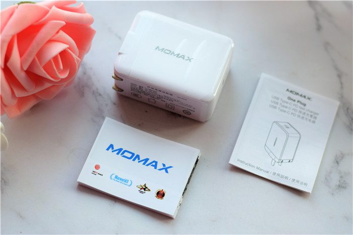 MOMAX18W快充插头同样支持PD快充,采用可以收纳的设计,方便不使用时将金属片收纳。
