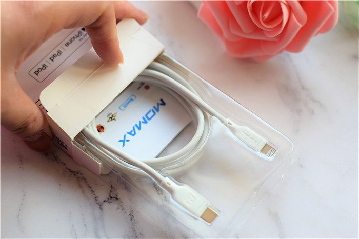 小白C to Lightning快充线的Type-C和Lightning两个接口做工很扎实;Lightning接口采用苹果原装8针C94端子头,充电、连接电脑一步到位。同时,插头经过超过15000次的摇摆测试,保证长时间使用后也比较牢靠。