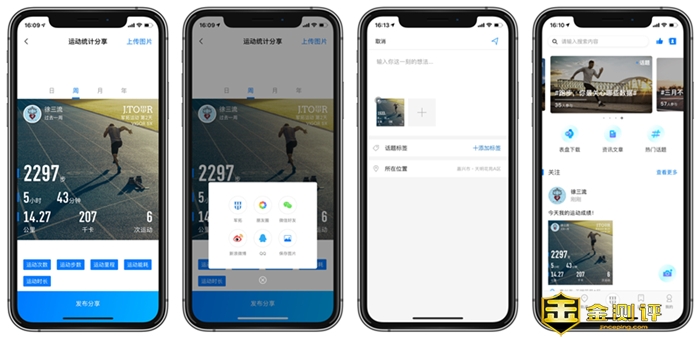 如果你喜欢分享,喜欢将自己的运动晒一晒,我们首先第一想到的就是微信朋友圈,而在“军拓运动”APP中也可以分享,里面的社交圈就如微信上的朋友圈一样,有很多会关注,你也可以关注一些运动达人或者旅行达人,当你觉得今天的运动成绩不错,你可以点击运动统计分享,然后就像发朋友圈一样,输入的想法点击发送即可,这样你社交圈就可以看到你发布的动态了。