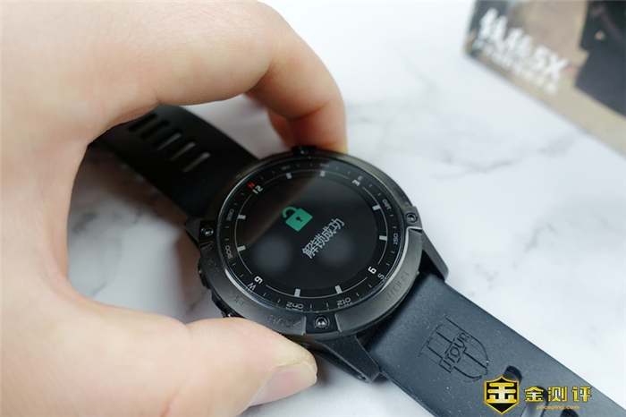 军拓铁腕5X的表盘具有锁定功能,也就是当你在不使用按键不使用表盘的时候,会自己进行上锁,而你需要查看表盘内容的时候,需要先解锁,解锁的方法非常的简单,只要两个手指同时按住BACK键和UP键就可以实现解锁功能了。