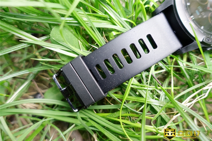 表带的材质为硅橡胶的材质,并印有军拓的品牌标示,但不支持快拆表带功能,这个笔者个人觉得有些遗憾,毕竟大部分的运动手表都支持快拆功能,表带为13孔大排汗设计,最大的特点就是不怕高温且可抵御严寒。