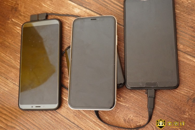 用自带线、输出口、和无线充,NINEKA/南卡POW-1无线充电宝可以同时给三部手机充电。