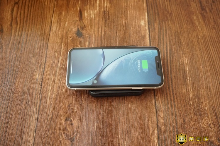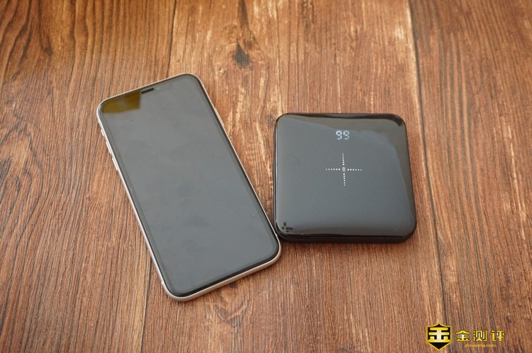 NINEKA/南卡POW-1无线充电宝最大的特点就是支持无线充电,由于采用了纯铜大线圈设计,感应距离可以达到6mm的无线充电,通过苹果iPhone? XR进行测试,充电宝的兼容性很好,完全匹配苹果的无线充电,充电的速度与一般的桌面无线充电器没有区别。